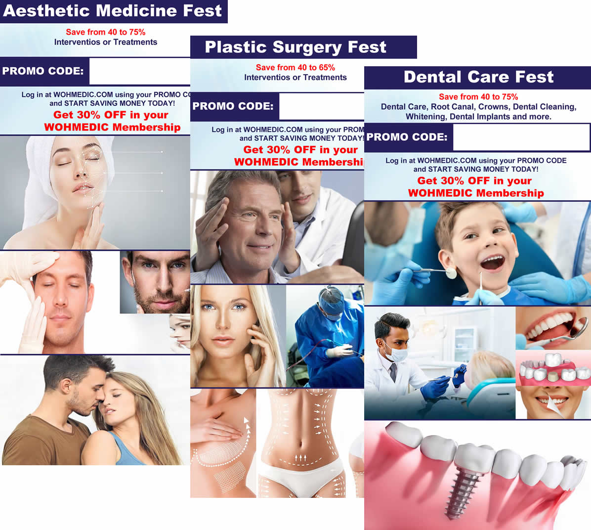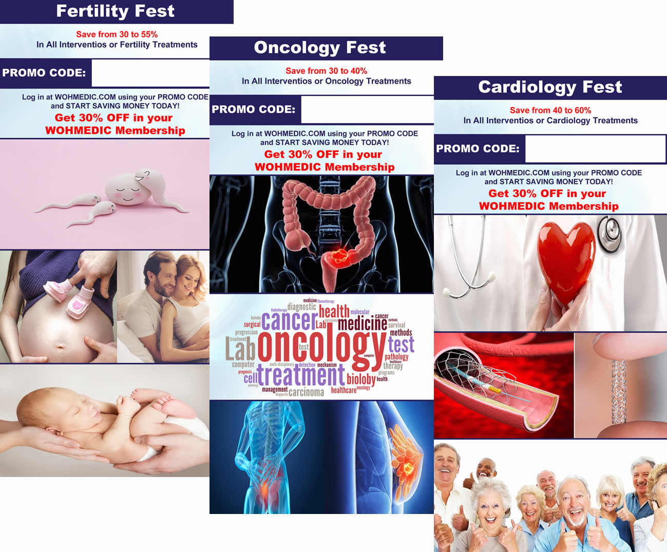 Lo más importante son los “Joint Ventures” que hacemos con nuestros especialistas médicos, clínicas u hospitales, creando diferentes promociones, descuentos y hasta tipo de seguro medico por procedimiento, WOHMEDIC no es solo traerle pacientes vamos un poco mas allá con programas innovadores para crear un flujo de pacientes constante y en aumento.
