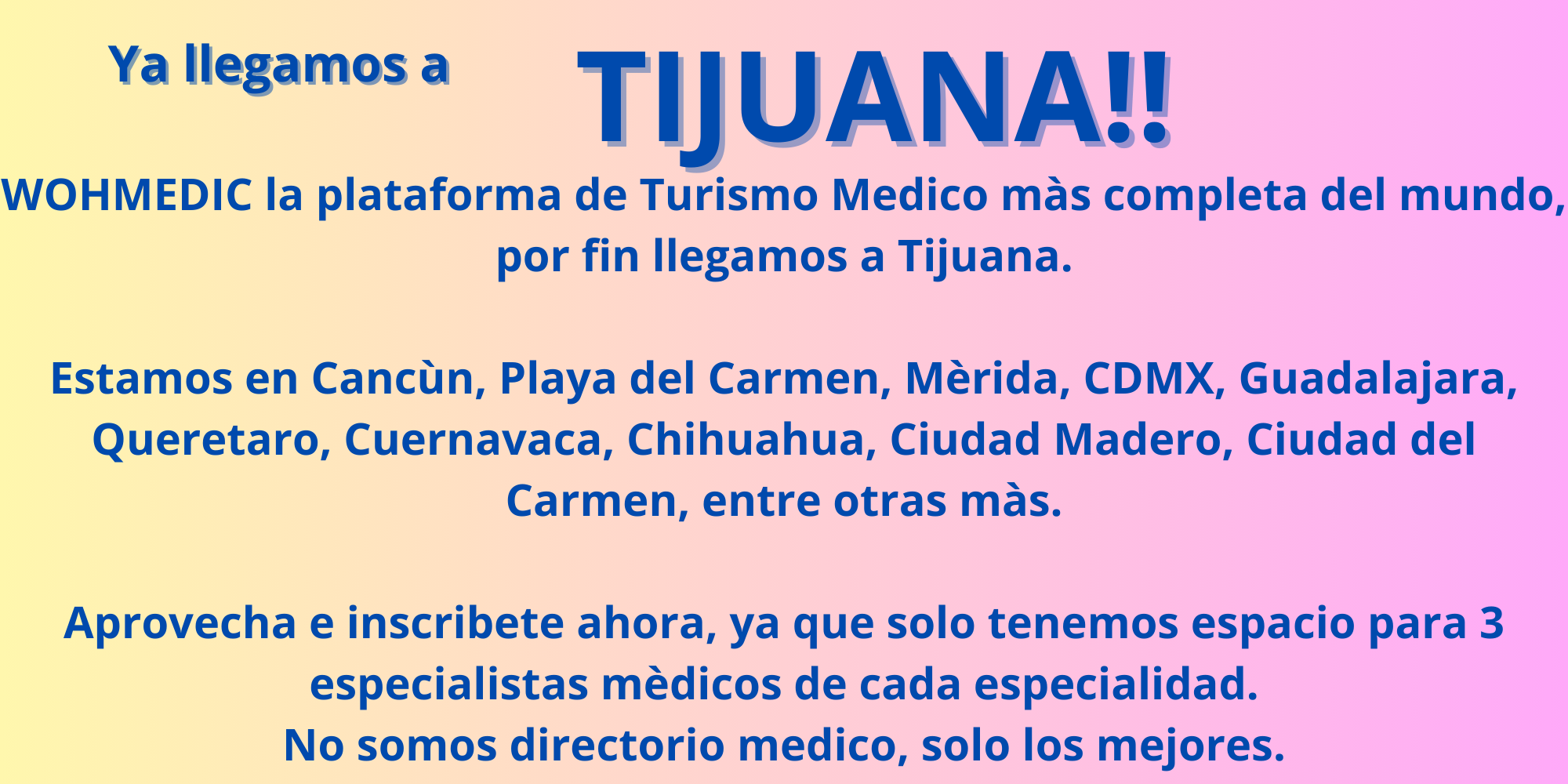 Por un lado “inscribimos” a Especialistas Médicos, Hospitales, Clínicas y proveedores de servicios médicos y turísticos en la plataforma WOHMEDIC.COM